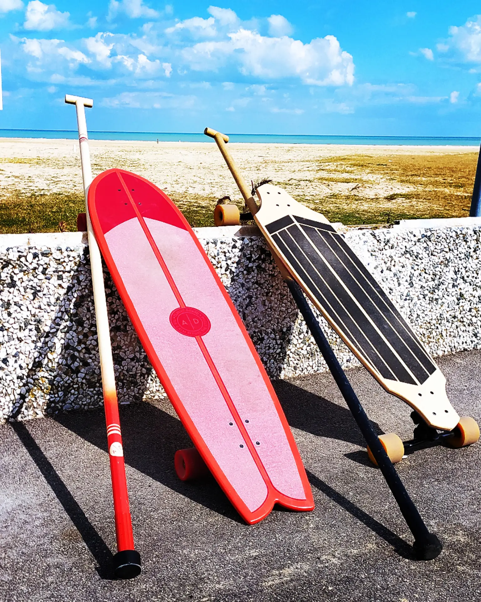 La passione per il mare, per il surf e per il design delle tavole da surf classiche sono al centro della nostra filosofia. Creiamo longboard skate classici ideali per simulare l’allenamento di un longboard in mare su strada. Cross step, noseride, hang five e hangten sono solo alcune delle evoluzioni possibili su questi longboard. Lo spazio abbondante di movimento sul deck consente manovre di virata in posizione arretrata e pose mozzafiato di nose ride. Customizziamo tavole in base al peso corporeo e alle esigenze del rider per garantire la giusta flessibilità e risposta in manovra. Dalle tavole Shapate e verniciate a mano a quelle stampate, ogni nostra creazione rispecchia lo stile vintage della surf culture degli anni 70 e 80. Tutti pezzi unici che non possono mancare nel tuo quiver. AD ognuno la sua!